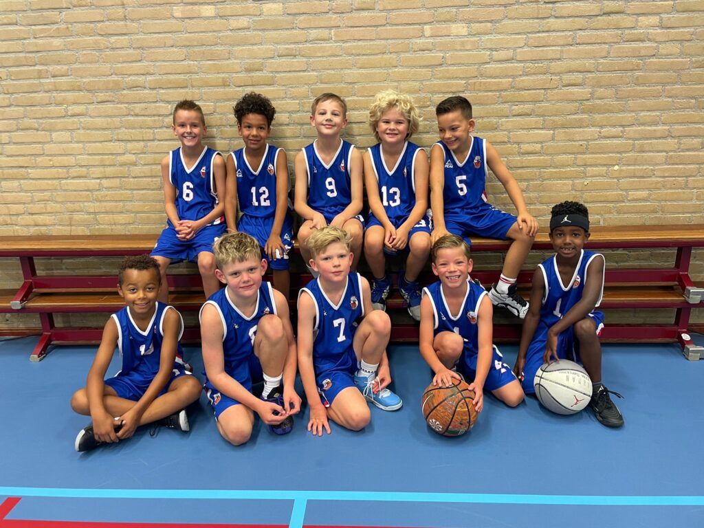 In het slotstuk van de wedstrijd zorgden Ezra en Jim voor een reeks mooie doelpunten. Vorige week hadden we vooral veel driepunters, maar dit keer was het Tygo die er eentje binnenschoot. Ondanks onze moeizame start, vooral in de verdediging, wisten we dat tijdens de wedstrijd goed recht te trekken. Jim, Mats en Cheveyo pakten veel ballen af van de tegenstander, terwijl er onderling volop werd overgespeeld. Dylan, Dean en Yaro gaven splijtende passes, en Ezra, Jort en Tygo vielen op met hun vrijlopen en snelle dribbels.
